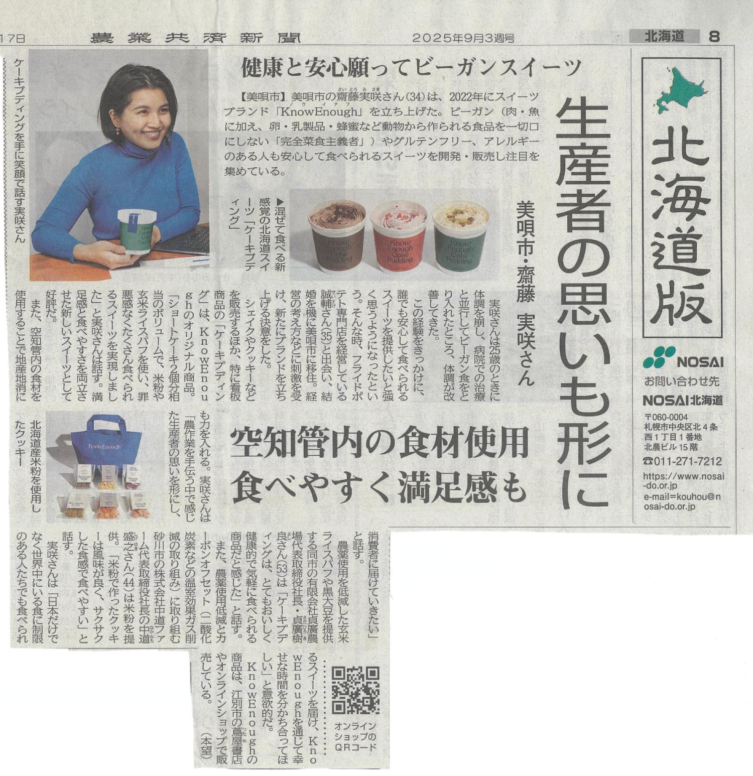 私たちの活動を、北海道の農業を支える「NOSAI北海道」さまに取材していただきました。 地元の生産者さんとともに歩んできた想いや、ブランドに込めた「足るを知る」の考え方などをお話しする時間は、とても大切で嬉しい経験でした。 地域の未来を支える仲間として、こうして声を届けてもらえることに心から感謝しています。